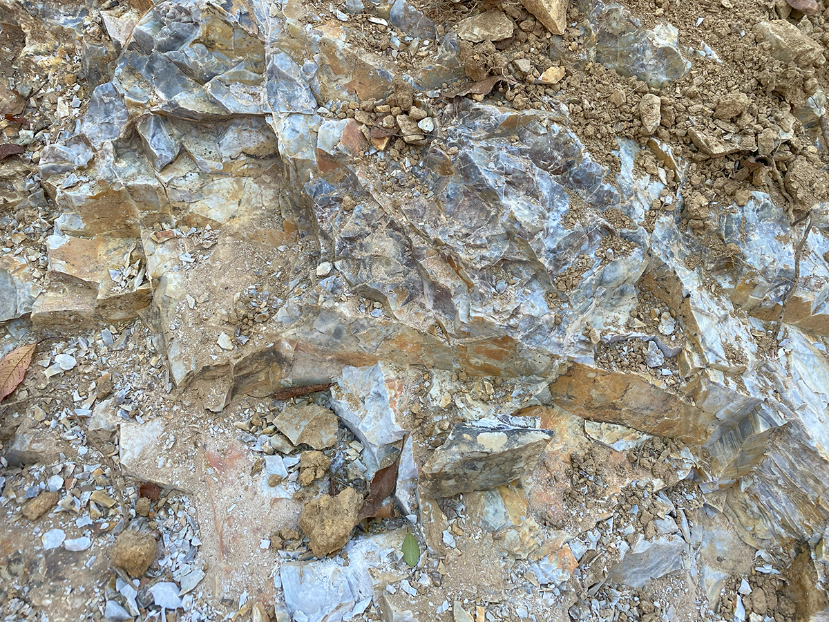 We ended up with 20 pounds of flint. Hammers, weeding tools, and plastic bags were the tools we took with us, but next time, chisels and buckets will most likely be our chosen equipment for excavation. We were wearing our glasses, which helped protect our eyes, but I did get my glasses scratched, so I will be wearing my old pair next time. We would recommend safety glasses. How are we using the flint? We are making a border for our shed and on some on the edging of our patio. We plan to visit again and pick up bigger pieces to use as a border around our bushes. Also, bringing the outside in is a habit of ours, so flint rocks are periodically throughout the inside of our house along with drift wood, shells, sticks, and other rocks. We had a lot of fun and Nether’s Farm is such a flint treasure! Flint abounds in these woods!